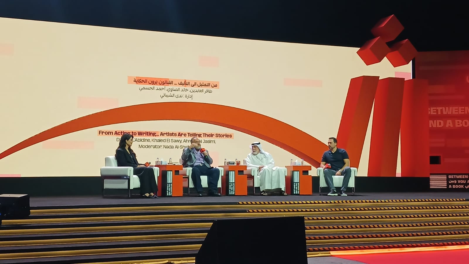 As part of the Sharjah International Book Fair 2025, Fasla Publishing attended the panel discussion “From Acting to Writing: Artists Tell Their Stories,” featuring Khaled El Sawy, Dhafer L’Abidine, and Ahmed Al Jasmi, moderated by media personality Nada Al Sheibani.
