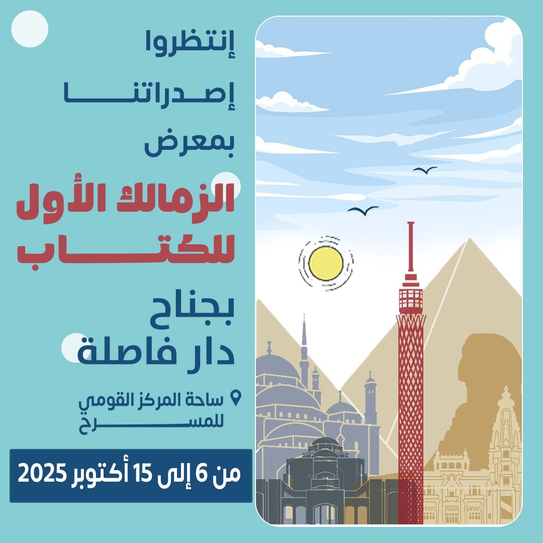 **Fasla Publishing House** is pleased to announce its participation in the **first edition of the Zamalek Book Fair**, held at the **National Center for Theatre Plaza** from **October 6 to 15, 2025**. 💙📚